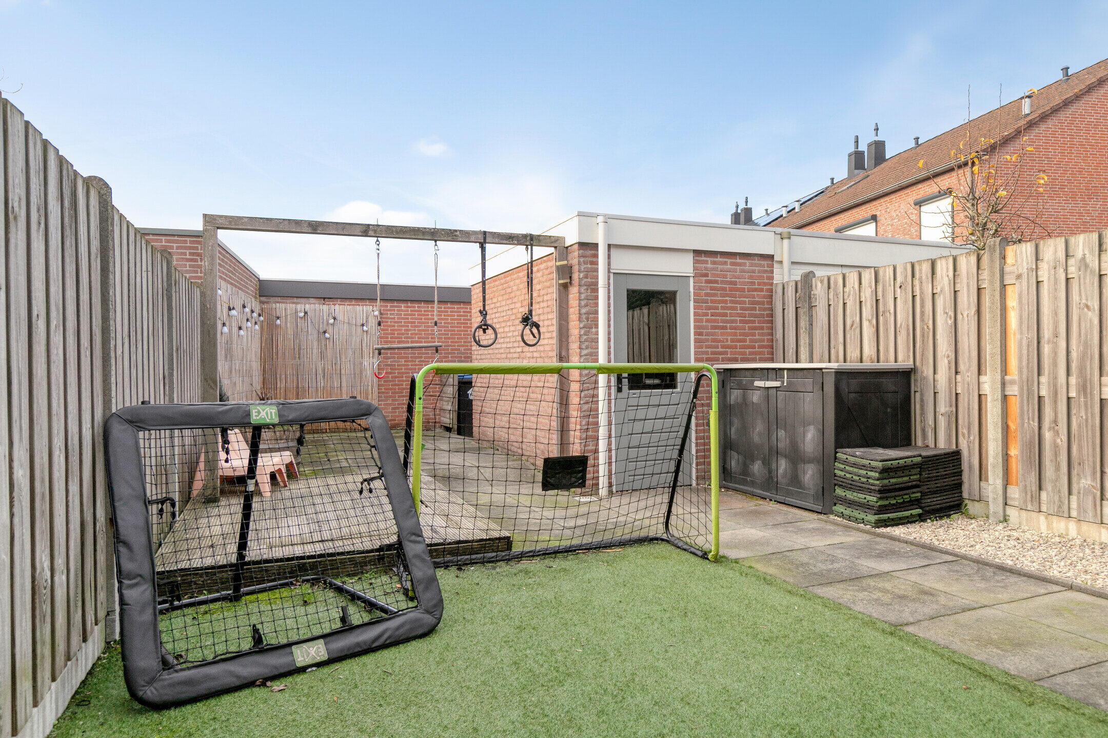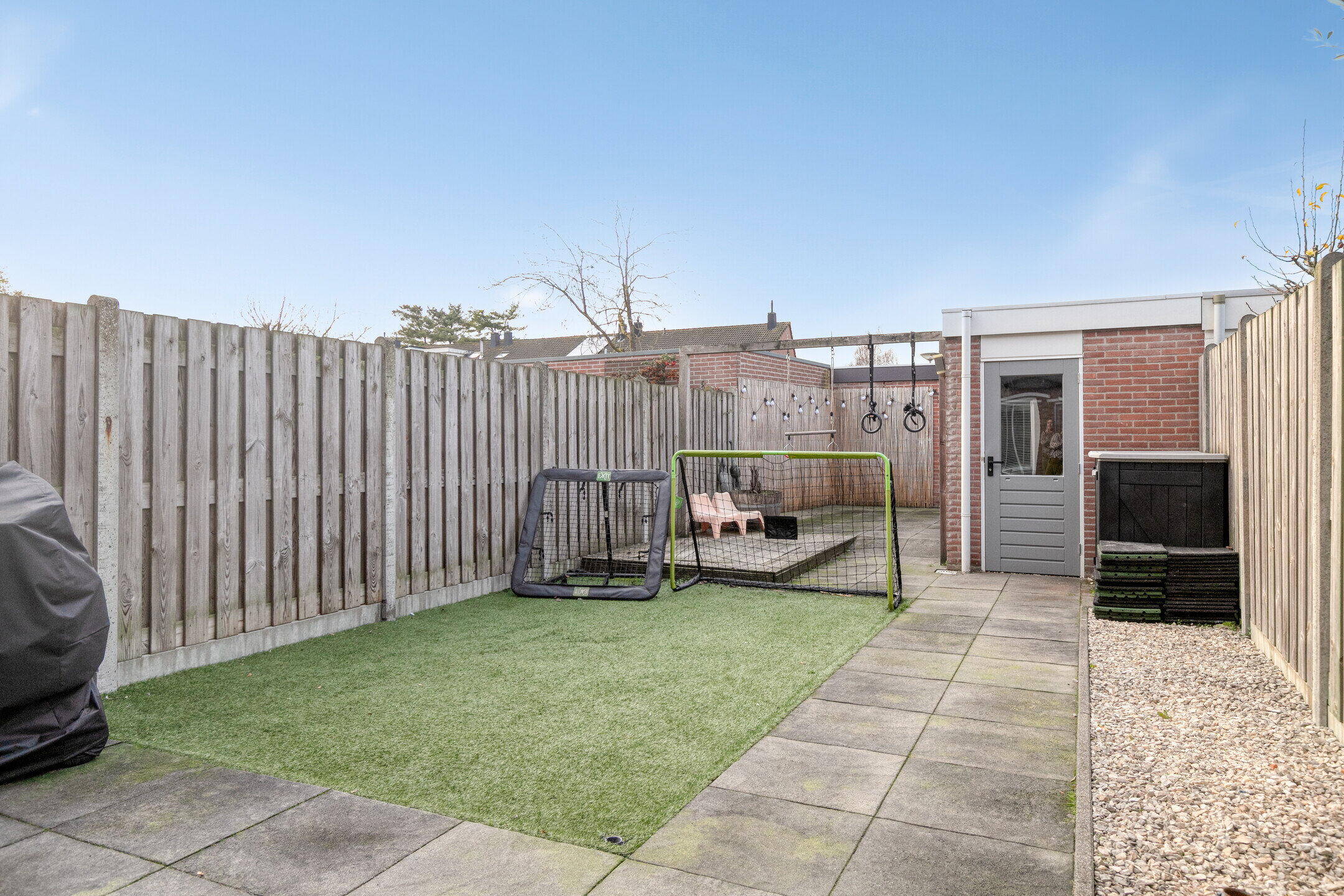 De tuin is netjes aangelegd met een mooie mix van bestrating en groen. Hier creëer je met gemak een gezellige loungehoek of een speelplek voor de kinderen. De ligging op het zuiden zorgt voor veel zonuren! Extra handig: de vrijstaande berging, perfect voor fietsen, tuinkussens en ander buitenmateriaal.